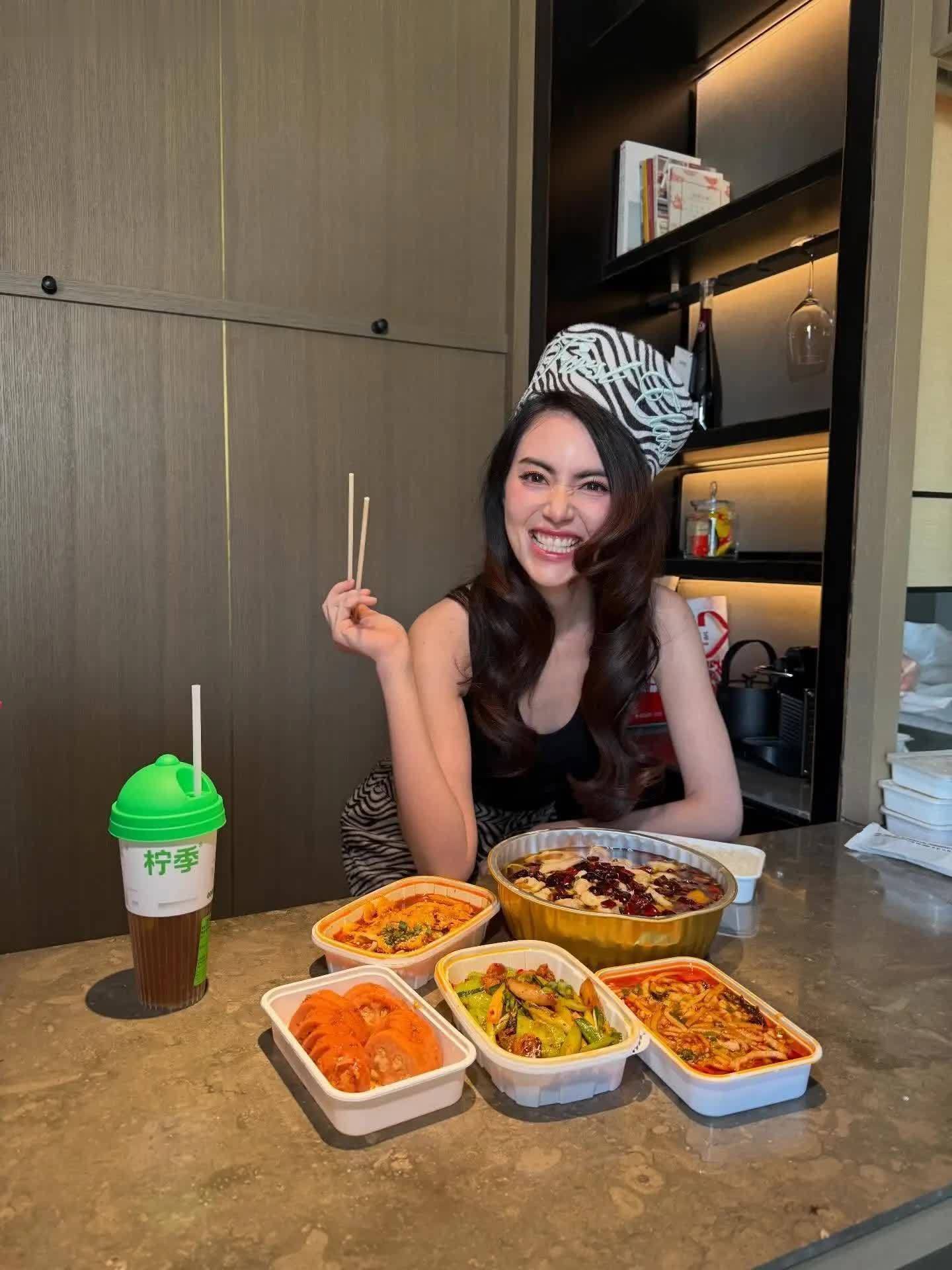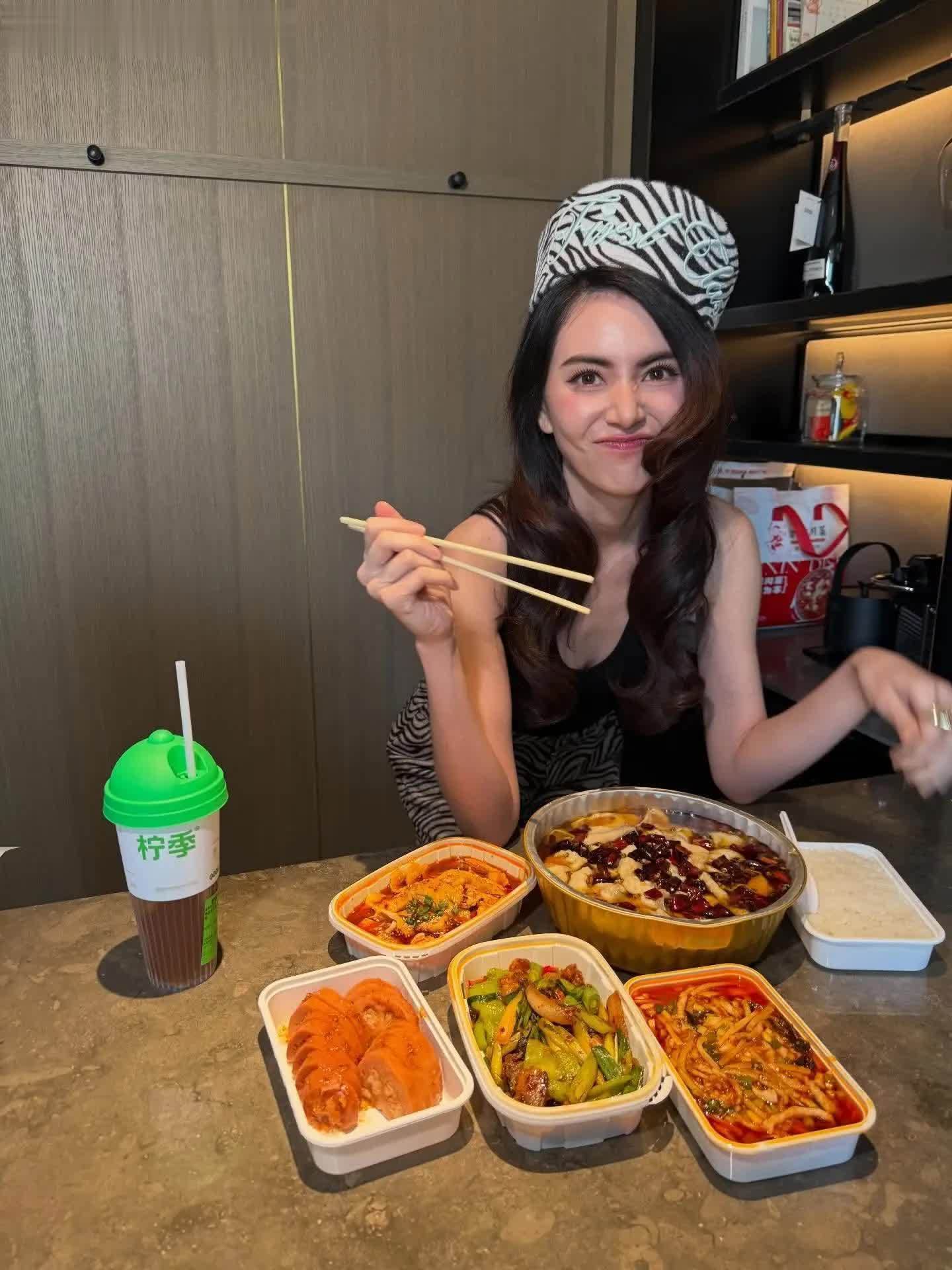 作为艺人要保持身材,偶尔多吃一点美食也很开心!